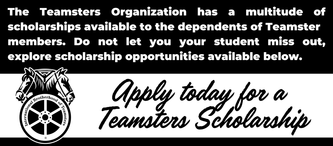 The Teamsters Scholarship Fund will provide 600 $2,000 scholarships to graduating seniors of the Class of 2026. These awards are merit-based. To qualify, applicants must be a son, daughter or dependent of a Teamster member in good standing, which is defined in Article X, Section 5 of the International Constitution.